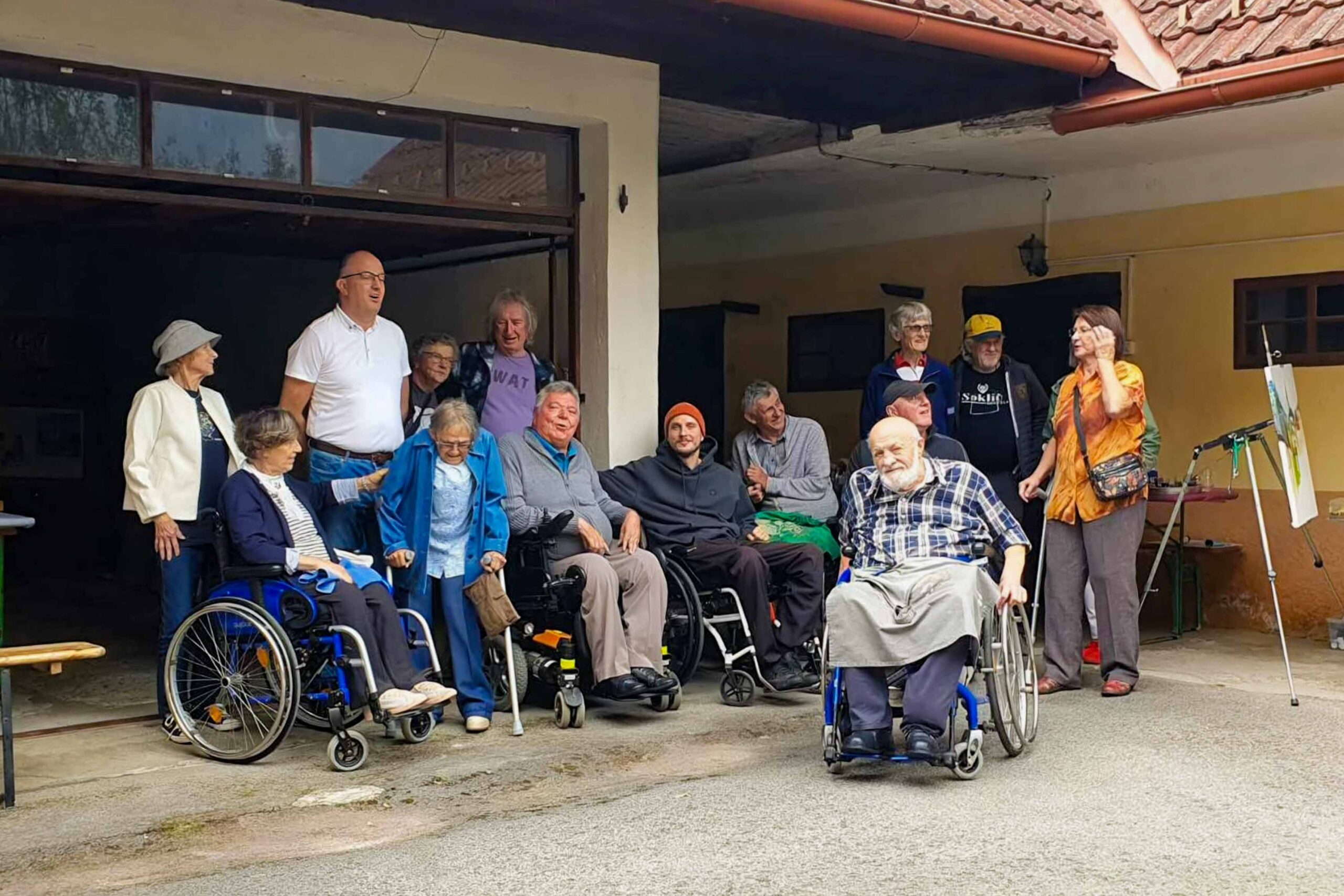 Najprej smo se ob pogostitvi malo podružili, kasneje so likovniki ustvarjali, lahko smo tudi občudovali Vojko Gašperuta in Željka Vertelja med samim slikanjem. Za kosilo je poskrbela bližnja gostilna in nam dostavila hrano na domačijo, kjer smo se za mizami ponovno združili ob dobri hrani in smehu.