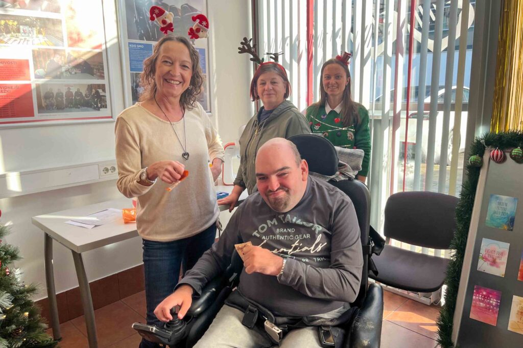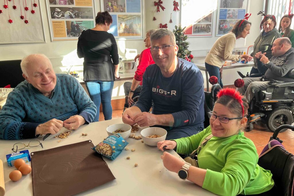 V četrtek, 18. 12. 2025, smo se na sedežu društva DPJZŠ zbrali na prijetni predbožični delavnici z naslovom Praznična peka piškotov. Že ob prvih pripravah je celotno društvo napolnil omamen vonj po prazničnih dobrotah, ki je ustvaril pravo decembrsko vzdušje. Naši člani so se ob peki izjemno zabavali, se med seboj povezovali, sodelovali in ustvarjali. Delavnice so se udeležili tudi uporabniki osebne asistence skupaj s svojimi asistenti, kar je dodatno obogatilo dogajanje in prispevalo k sproščenemu ter vključujočemu vzdušju. Bilo je več kot zelo prijetno – ideje o kombiniranju receptov, okusov in oblik so se kar vrstile.