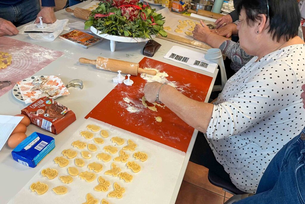 Udeleženci so sami pripravili maso za piškote, nato pa z različnimi modelčki oblikovali res čudovite praznične piškotke. Preizkusili smo tudi nekaj povsem naključnih receptov, najdenih na družbenih omrežjih, ki so nas prijetno presenetili in dokazali, da je včasih vredno poskusiti tudi kaj novega. Posebno veselje je prineslo okraševanje, saj so piškoti dobili končno glazuro povsem po trenutnem navdihu vsakega posameznika. Nastale so prave male umetnine. Sveže pečene piškote smo z veseljem poskusili ob kavici in čaju, navdušenje pa je bilo več kot očitno. Ob koncu delavnice smo bili prav vsi zelo zadovoljni – s potekom, z ustvarjenimi dobrotami in predvsem z lepim druženjem, ki nam je polepšalo predpraznični čas.